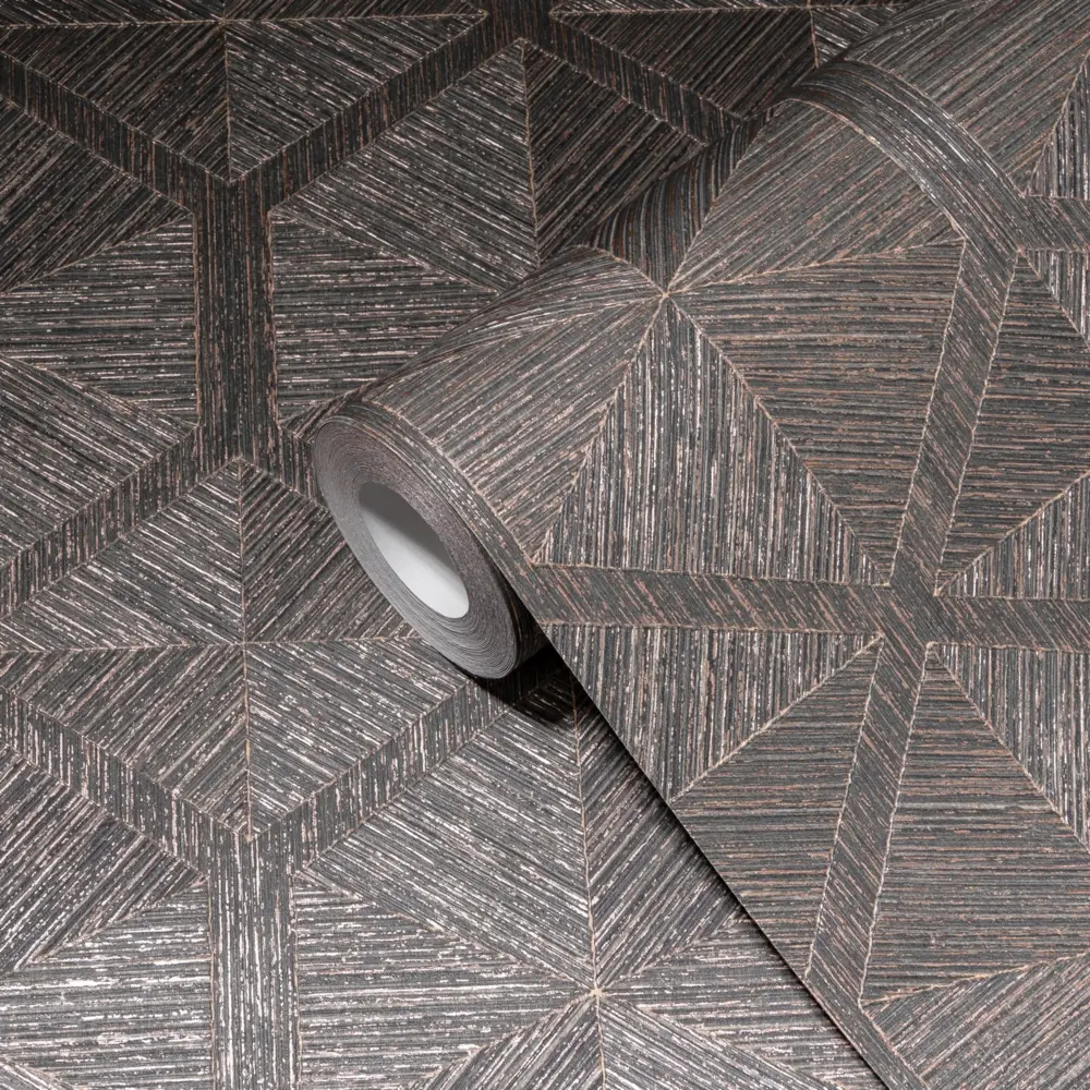 Die Vinyltapete 386902 von A.S. Création kombiniert eine elegante, geometrische Optik in den Farben Bronze und Grau mit einer glänzenden, strukturierten Oberfläche. Dieses moderne Wanddekor eignet sich hervorragend für verschiedene Wohnbereiche wie Wohnzimmer, Schlafzimmer, Küche, Bad oder Büro.