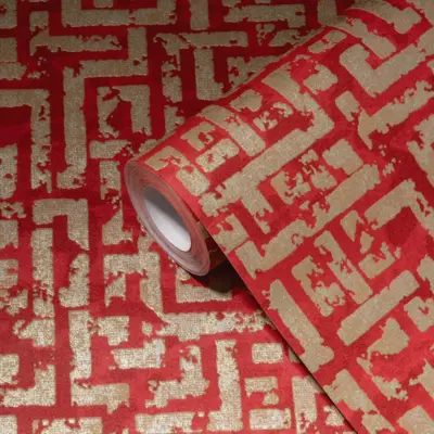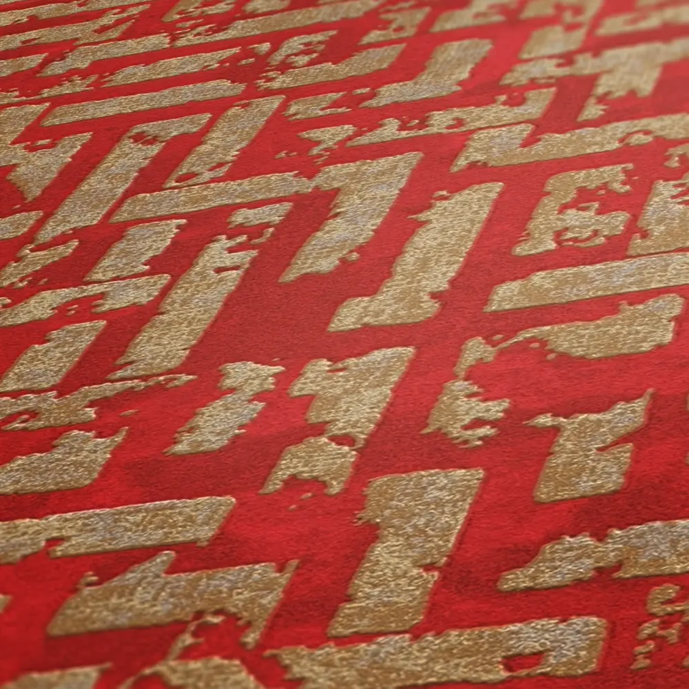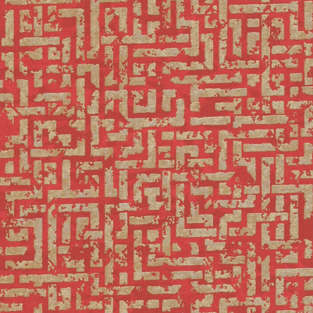 Die Livingwalls Vliestapete 386954 von A.S. Création kombiniert ein faszinierendes geometrisches Muster in Rot, Gold und dezenten Silberakzenten mit einer leicht glitzernden und strukturierten Vinyloberfläche. Das moderne Tapetendesign verleiht jedem Raum – vom Wohnzimmer über das Schlafzimmer bis zum Büro, die Küche oder das Badezimmer – eine stilvolle und lebendige Ausstrahlung.