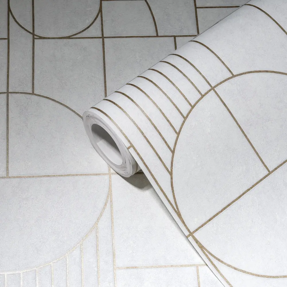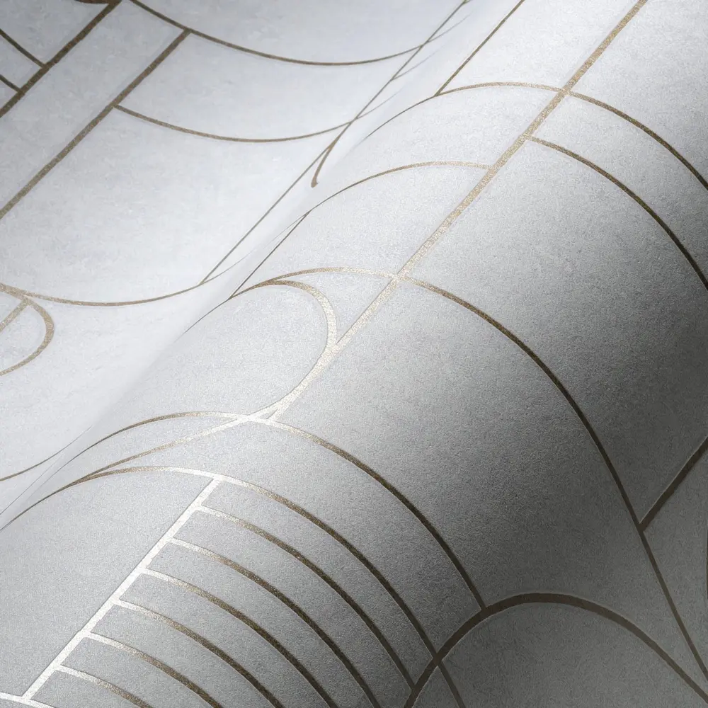 Die Livingwalls Vliestapete 386992 von A.S. Création verbindet stilvolle Moderne mit zeitlosem Design. Das auffällige geometrische Muster in Weiß, Gold und Grau setzt eindrucksvolle Akzente und verleiht jedem Raum eine elegante Atmosphäre. Durch ihre leicht glänzende, strukturierte Oberfläche wirkt die Tapete besonders edel und lebendig.