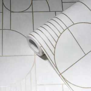 Livingwalls Vliestapete 386992 in Weiß-Gold mit Geometrischem Design