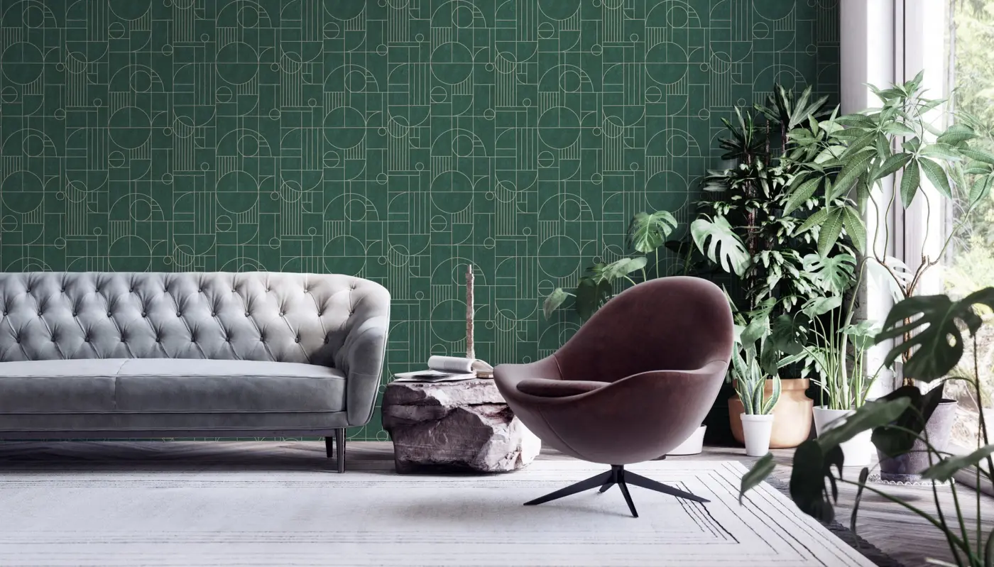 Die Livingwalls Vliestapete 386993 von A.S. Création überzeugt mit einem modernen, geometrischen Design in edlen Grüntönen und eleganten, goldenen Akzenten. Dank der leicht glänzenden und dezent strukturierten Oberfläche bringt diese Tapete einen Hauch von Luxus in jeden Raum – ob Wohnzimmer, Schlafzimmer, Küche, Büro oder Badezimmer.