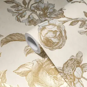 Exklusive A.S. Création Vliestapete 387003 – Elegante florale Akzente in Gold und Creme