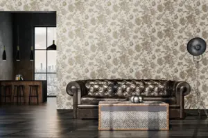 Verleihen Sie Ihren Räumen mit der hochwertigen Vliestapete 387003 von A.S. Création ein anspruchsvolles Ambiente. Das edle, florale Design in goldenen und cremefarbenen Tönen sorgt für eine luxuriöse Optik und bringt stilvolle Eleganz in Ihr Zuhause. Mit ihrer glitzernden, leicht strukturierten Oberfläche setzt diese Tapete besondere Akzente an Wand und Decke.