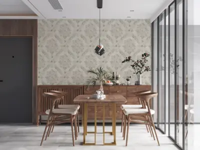 Ob im Wohnzimmer, Schlafzimmer, Büro oder Küchenbereich – diese Tapete passt sich unterschiedlichsten Raumkonzepten an. Das klassische Muster im geraden Rapport von 64 cm sorgt für ein harmonisches Gesamtbild an der Wand.