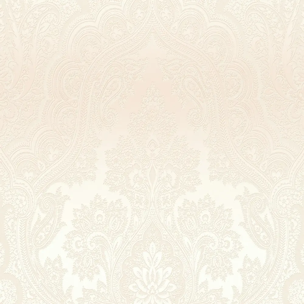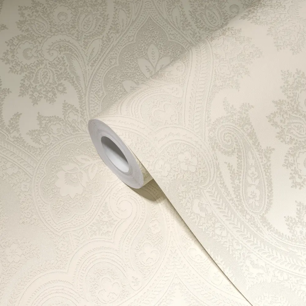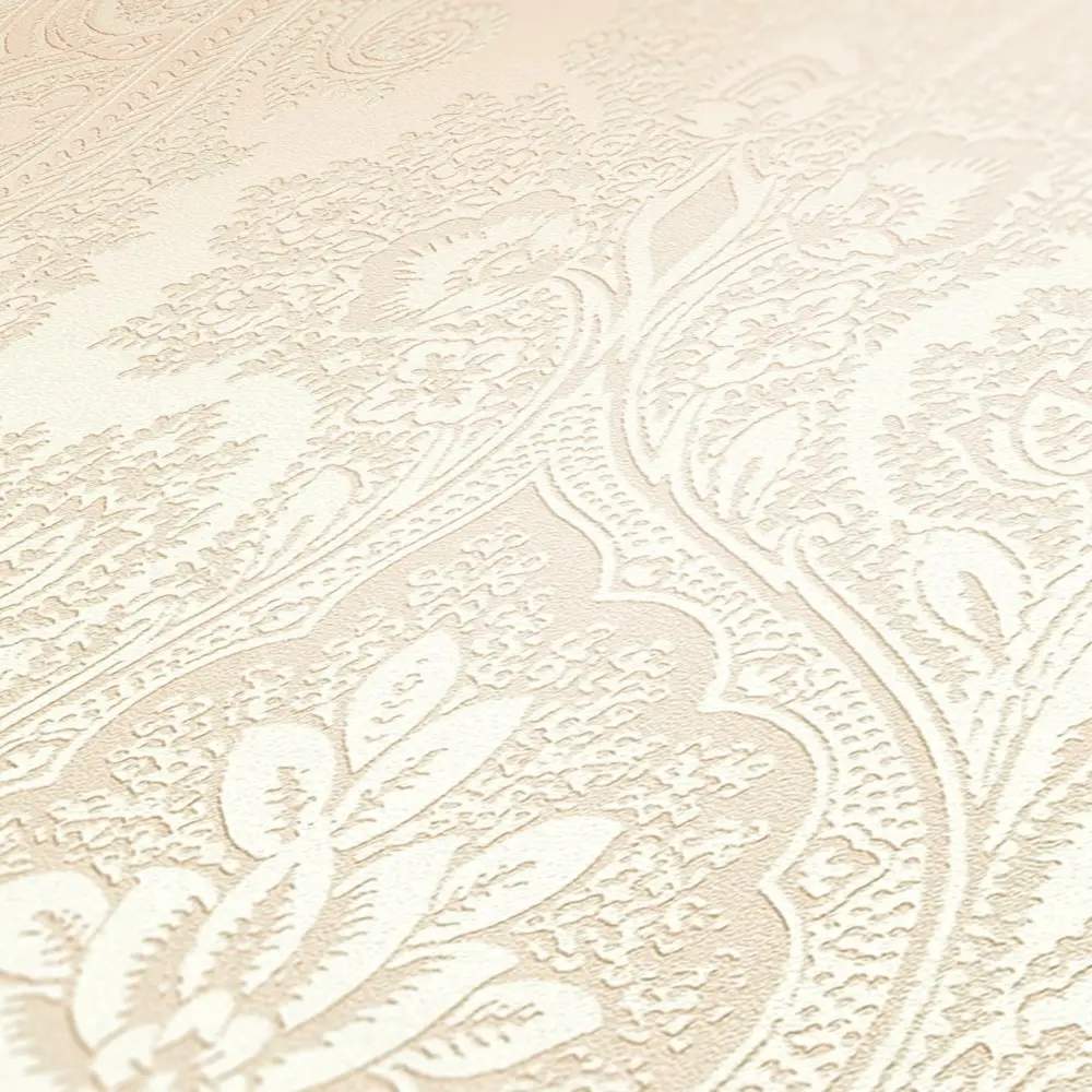 Elegante Vinyltapete 387082 in Weiß und Silber – Klassischer Barockstil