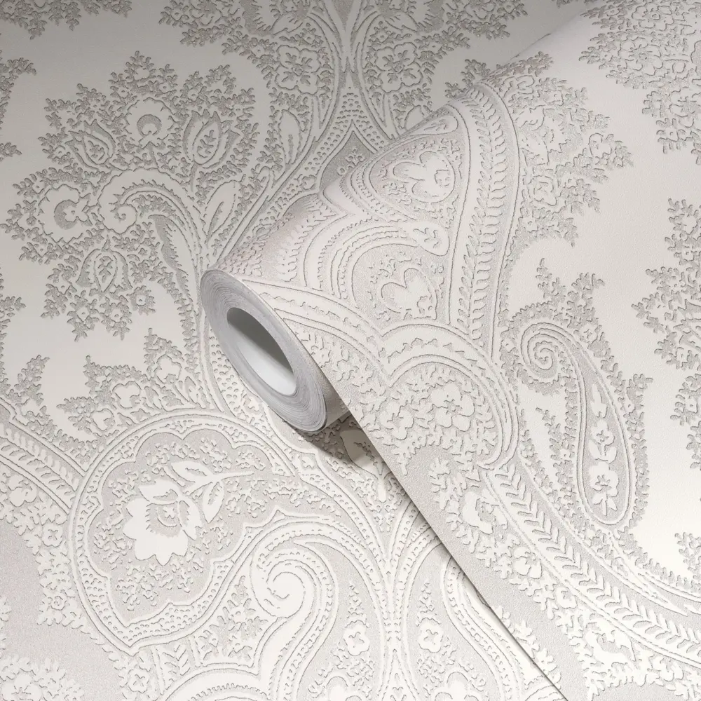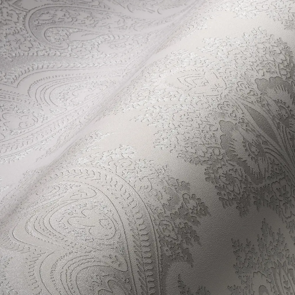 Verleihen Sie Ihren Räumen einen Hauch von Luxus mit der Livingwalls Vinyltapete 387084 von A.S. Création. Das stilvolle Barock-Design in Silber und Grau bringt klassische Eleganz und eine edle Ausstrahlung an Ihre Wände.
