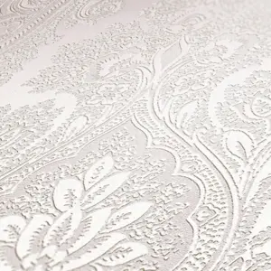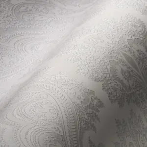 Die Tapete besticht durch ihre leicht glitzernde Oberfläche und eine glatte Struktur, wodurch sie eine moderne Interpretation des klassischen Barock-Stils bietet. Dank des hochwertigen Vliesträgers ist sie besonders einfach anzubringen und lässt sich bei Bedarf restlos trocken abziehen.
