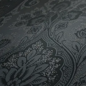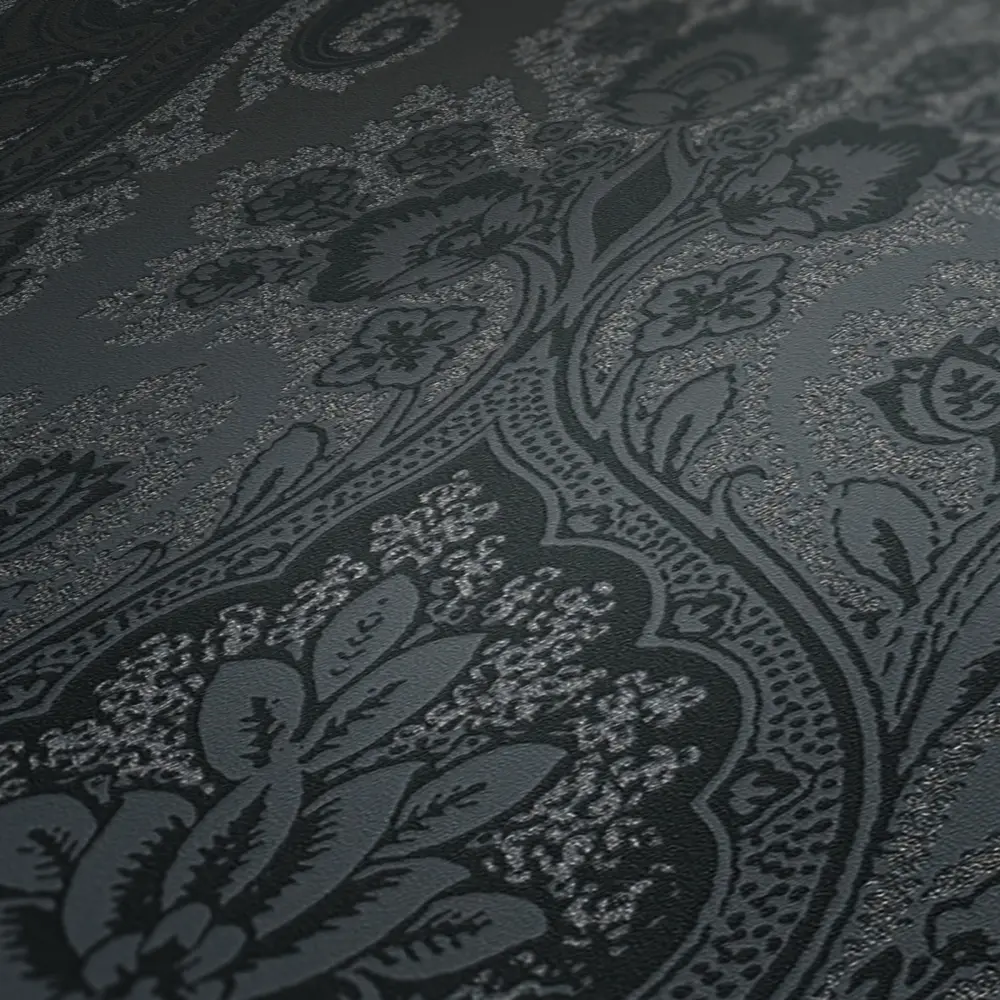 Die A.S. Création Vinyltapete 387085 vereint ein klassisches Barock-Design mit moderner Farbgebung in Schwarz, Grau und Silber. Das edle Muster bringt ein stilvolles und luxuriöses Ambiente in Ihre Räume. Die leicht glitzernde Oberfläche sorgt für einen dezenten Glanzeffekt und unterstreicht die hochwertige Optik.