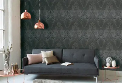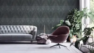 Elegante Vinyltapete im Barock-Stil – Schwarz, Grau & Silber