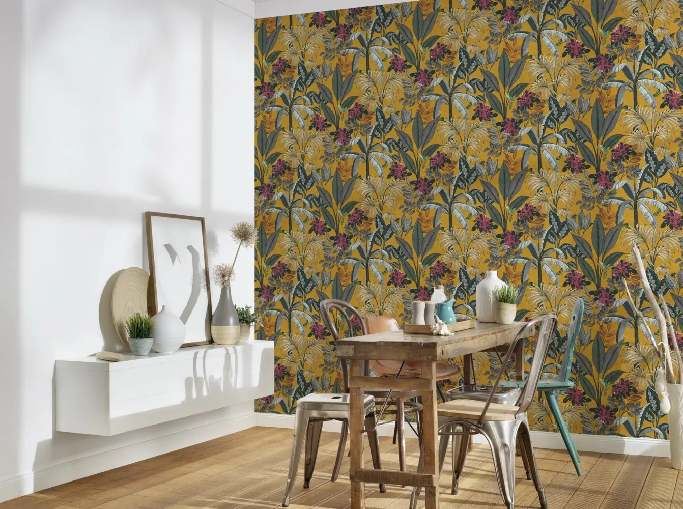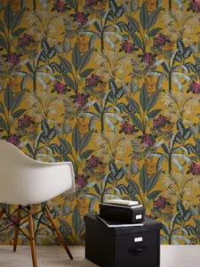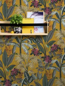 Die Vliestapete 387381 von A.S. Création vereint stilvolles Design mit hoher Funktionalität. Mit ihrer modernen Waldoptik in den Farbtönen Gelb, Grau, Grün und Rosa verleiht sie jedem Raum eine frische und naturnahe Atmosphäre. Die matte Oberfläche und die glatte Struktur sorgen dabei für einen zeitgemäßen Look.