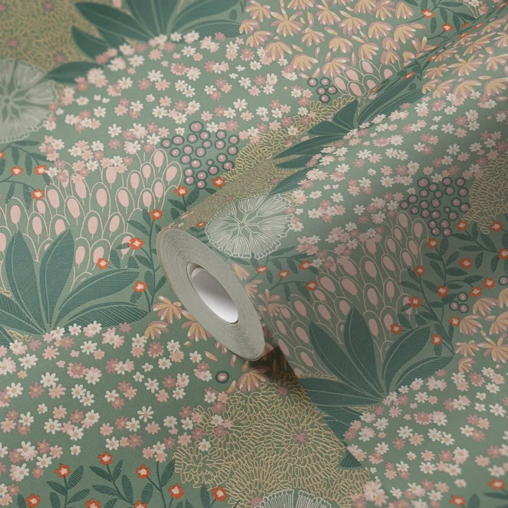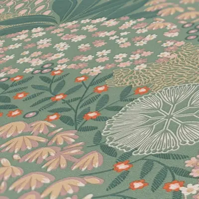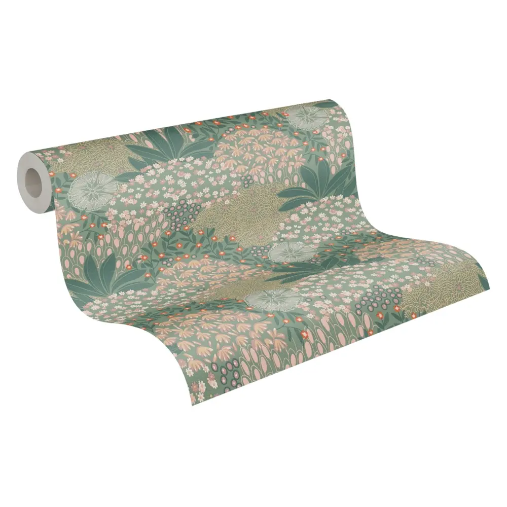 Die Vinyltapete 387401 von A.S. Création vereint modernes florales Design mit funktionalen Eigenschaften. In harmonischen Farbtönen von Grün, Gelb, Orange, Weiß und Beige bringt diese Tapete frische Akzente in jedes Zuhause. Das florale Muster sorgt für eine lebendige und zugleich elegante Atmosphäre an Ihren Wänden.