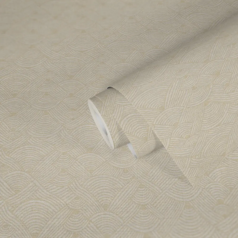 Die A.S. Création Vinyltapete 387424 vereint modernes Design mit zeitloser Eleganz. Das grafische Art Deco Muster in den Farbtönen Beige und Weiß sorgt für eine stilvolle Atmosphäre in jedem Raum. Dank ihrer matten, leicht strukturierten Oberfläche und des hochwertigen Vinylmaterials zeichnet sich diese Tapete durch ihre Langlebigkeit und eine angenehme Haptik aus.