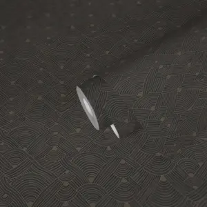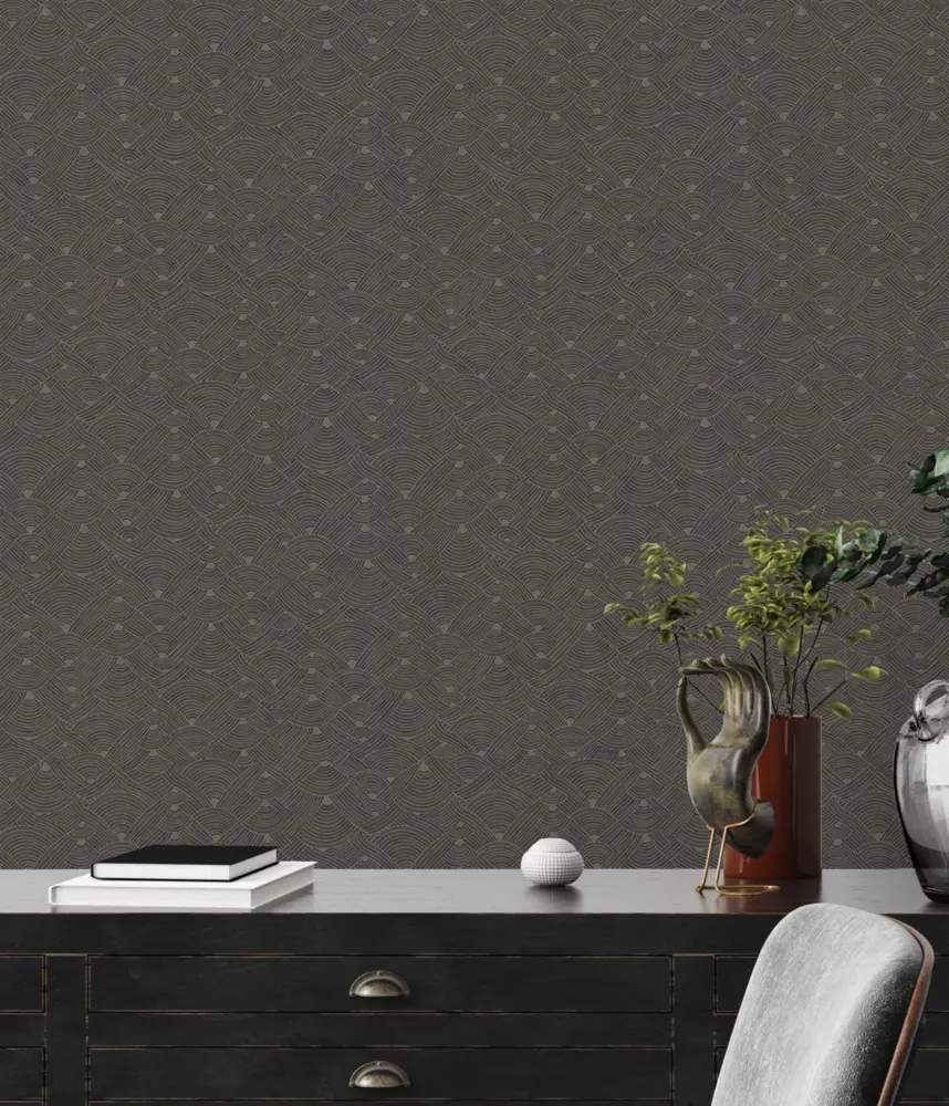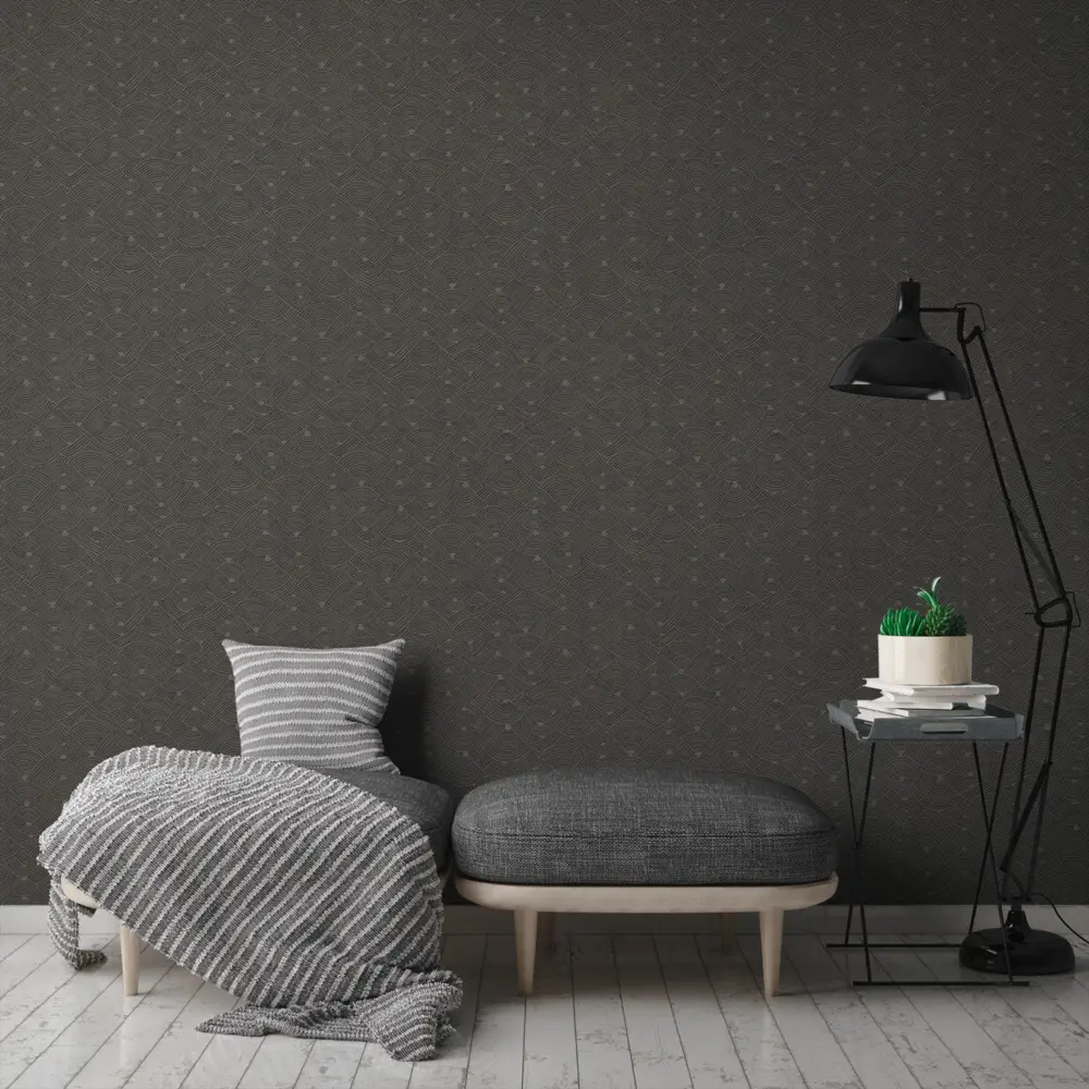 Die A.S. Création Vinyltapete 387426 überzeugt mit einem modernen Art Deco Design in edlen Schwarz- und Brauntönen. Ihr grafisches Muster bringt Eleganz und zeitlose Ästhetik an Ihre Wände. Die Tapete besteht aus hochwertigem Vinyl mit einer matten, leicht strukturierten Oberfläche, die eine angenehme Haptik bietet. Dank Vlies-Trägermaterial lässt sich die Tapete einfach anbringen und bei Bedarf restlos trocken abziehen.