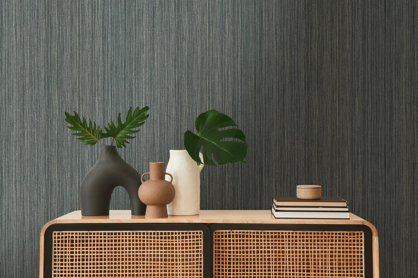 Die A.S. Création Vinyltapete 388191 vereint elegantes Design mit robusten Materialeigenschaften und sorgt für eine moderne Atmosphäre in jedem Raum. Das stilvolle unifarbene Muster besticht durch eine edle Optik in Schwarz mit goldenen und silbernen Akzenten, die für einen dezenten Glanz sorgen. Dank der leicht strukturierten Oberfläche und der leichten Glanzwirkung entsteht ein attraktives Spiel von Licht und Farbe an der Wand.