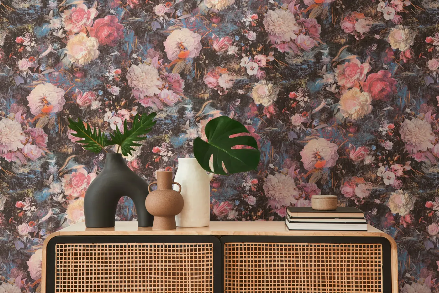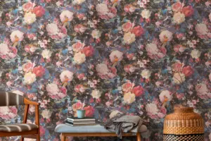 Das Blumenmuster im versetzten Rapport von 64/21 cm sorgt für eine gleichmäßige und ansprechende Optik an der Wand. Die Vinyltapete eignet sich hervorragend für individuelle Raumgestaltungen und setzt Akzente an Wand und Decke.