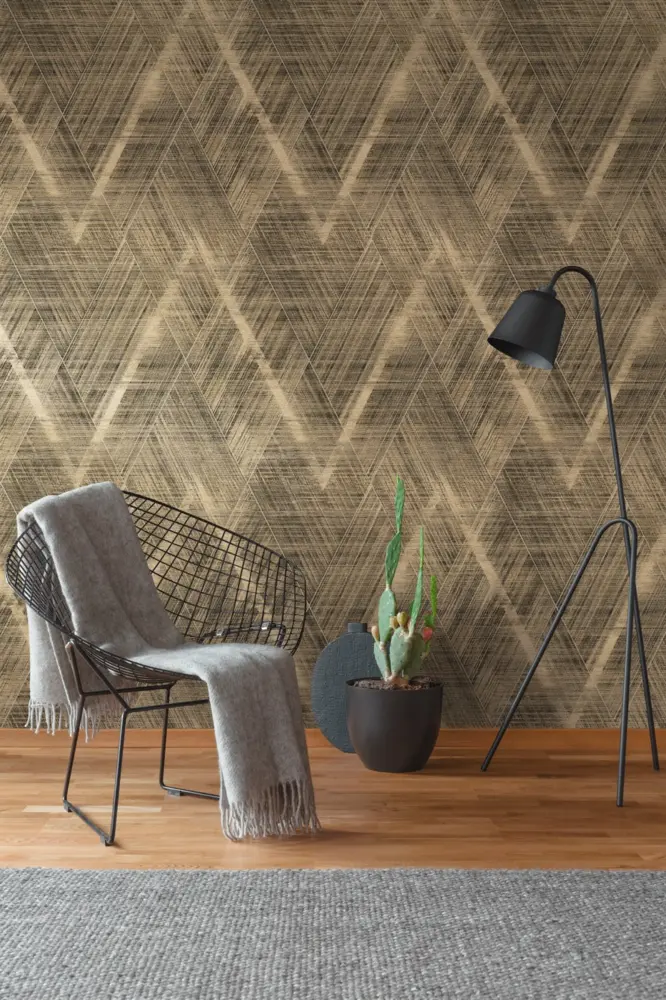 Verleihen Sie Ihren Räumen ein modernes Flair mit der A.S. Création Vinyltapete 388245. Das stilvolle grafische Design in Gold und Schwarz setzt exklusive Akzente und schafft eine edle Atmosphäre. Die leicht glänzende Oberfläche und die dezente Struktur verleihen der Tapete eine besondere Haptik und sorgen für ein ansprechendes Ambiente.