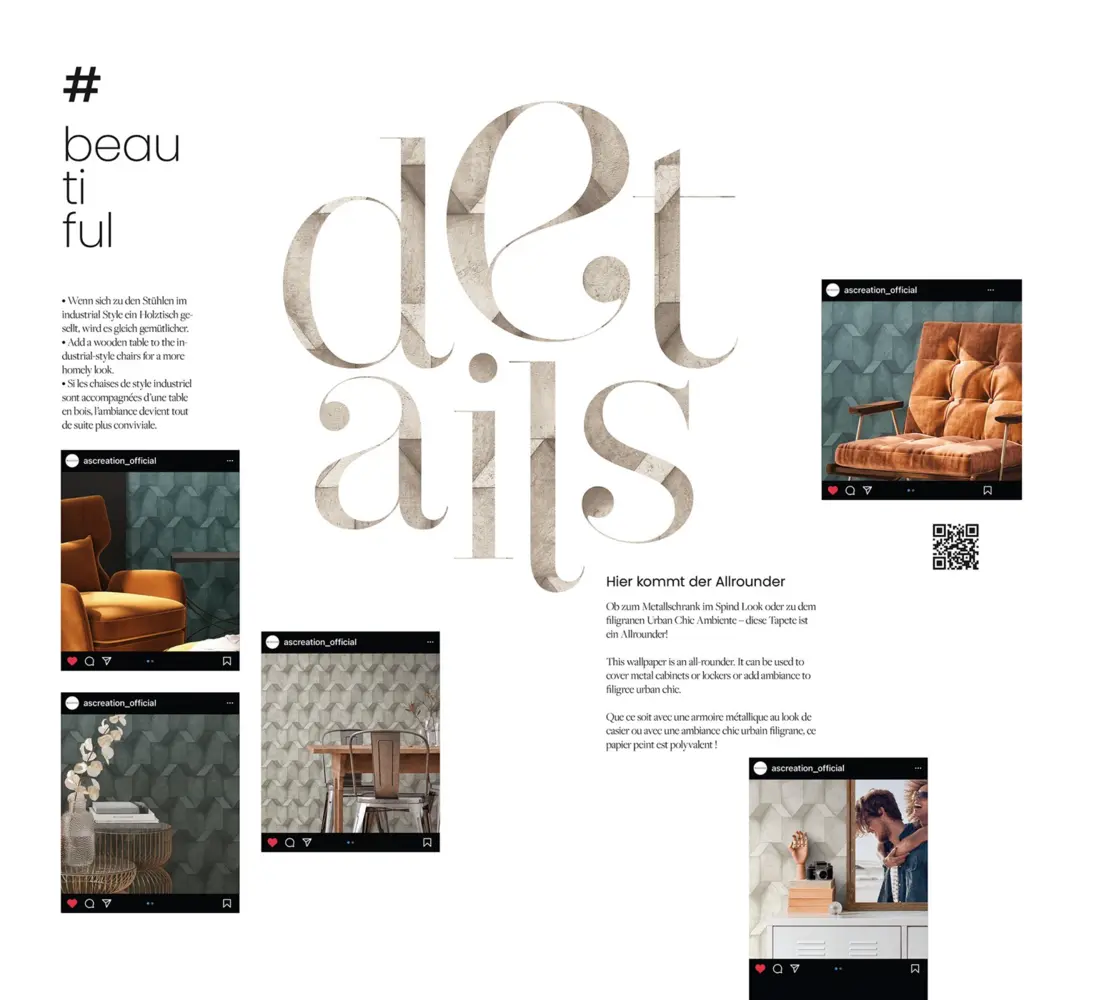 Mit einer Breite von 53 cm und einer Rollenlänge von 10,05 m bietet sie ausreichend Material für kreative Raumgestaltungen. Die Tapete verfügt über eine gerade Rapportierung von 32 cm und überzeugt durch ihre gute Lichtbeständigkeit sowie ihre hohe Scheuerbeständigkeit. Damit eignet sich dieses Modell ideal für Wohnräume, Flure oder Arbeitsbereiche und schafft ein ansprechendes Ambiente mit industriellem Charme.