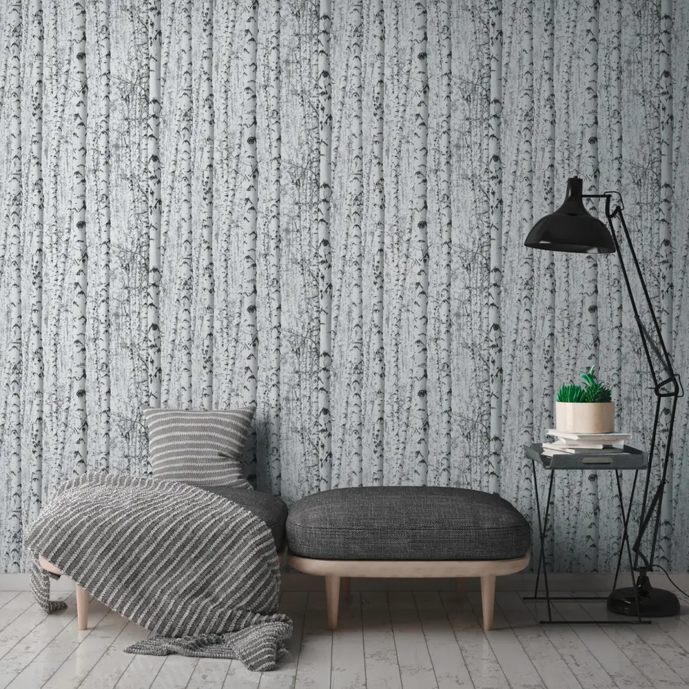 Die Papiertapete 388541 von A.S. Création vereint modernes Design mit natürlicher Eleganz. Das markante Waldmotiv in zeitlosem Schwarz-Weiß setzt stilvolle Akzente an jeder Wand und verleiht Ihren Räumen eine besondere Atmosphäre. Die matte, leicht strukturierte Oberfläche unterstreicht die hochwertige Optik und sorgt für ein angenehmes Raumgefühl.