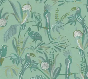 Livingwalls Vinyltapete 388982 – Stilvolle Vogeltapete in Grün und Weiß