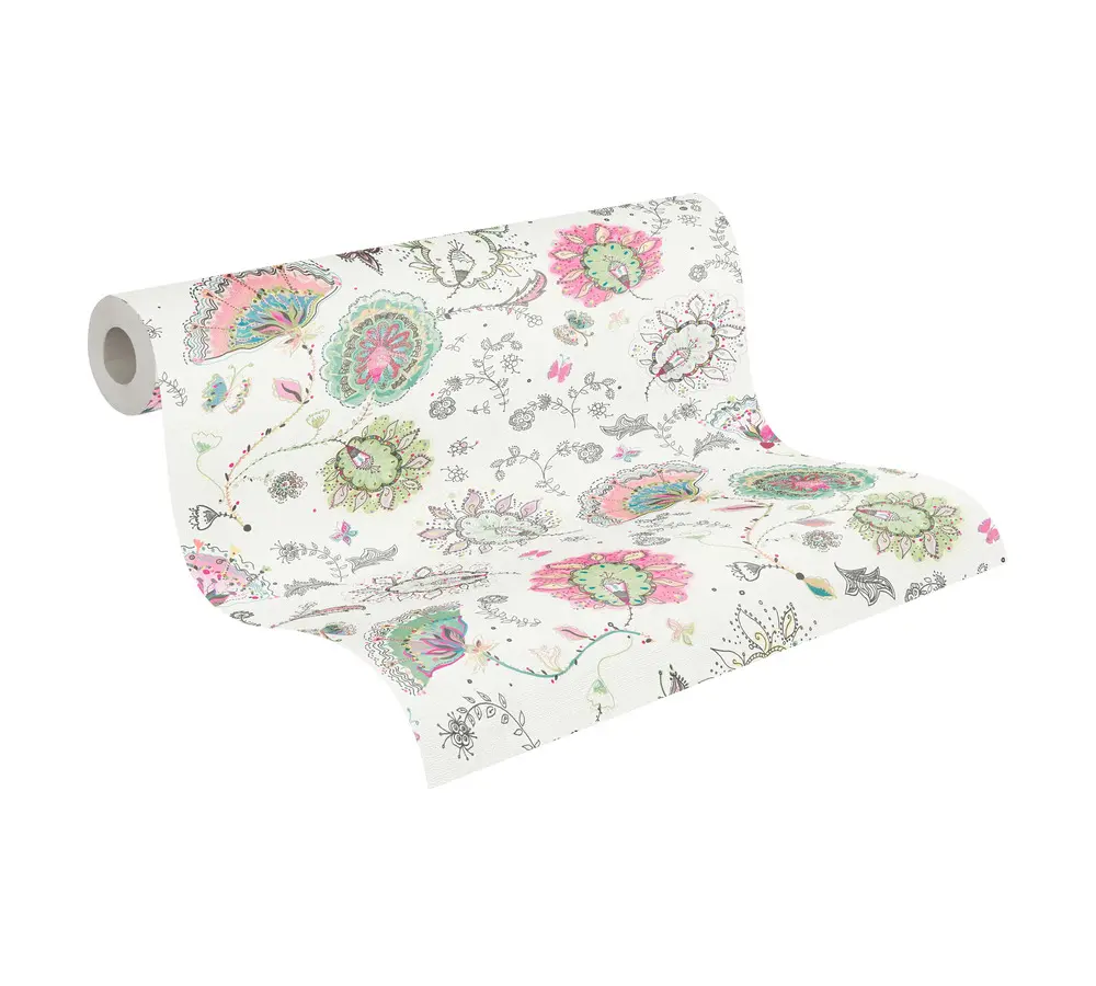 Die A.S. Création Vinyltapete 388991 überzeugt mit einem stilvollen floralen Muster in Weiß, Pink, Grün und Blau. Das moderne Design verleiht jedem Raum eine frische, lebendige Atmosphäre und setzt dekorative Akzente an Wand oder Decke.