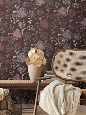 Livingwalls Vinyltapete 389003 – Stilvolle florale Akzente in Rot und Lila