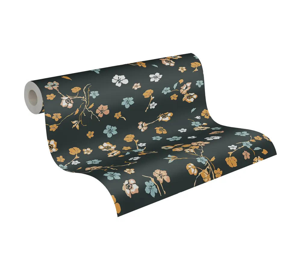 Die A.S. Création Vliestapete 389071 vereint modernes Design mit praktischer Funktionalität. Das elegante florale Muster kombiniert kräftiges Schwarz und freundliche Gelb-, Orange-, Blau- sowie Weißtöne, um jedem Raum ein außergewöhnliches Ambiente zu verleihen. Dank des strukturierten Profils und der matten Oberfläche wirkt die Tapete besonders edel.