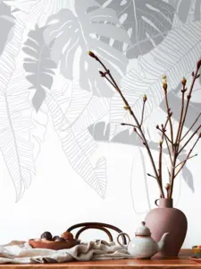 Livingwalls Vinyltapete 389101 in Weiß-Grau – Dschungel-Design für moderne Räume