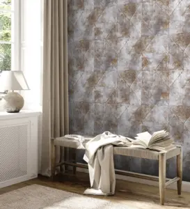 Die Livingwalls Vinyltapete 389764 überzeugt mit ihrem modernen grafischen Design in edlem Gold und Grau. Die leicht glänzende, strukturierte Oberfläche verleiht jedem Raum eine stilvolle, elegante Atmosphäre. Dank des hochwertigen Vinylmaterials ist die Tapete besonders strapazierfähig sowie hoch waschbeständig und besitzt eine gute Lichtbeständigkeit, sodass die Farben lange erhalten bleiben.