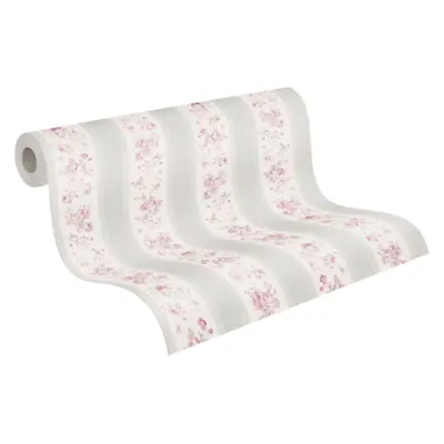 A.S. Création Vinyltapete 390692 – Graues, weißes und florales Design