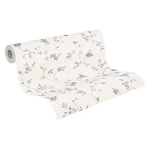A.S. Création Vinyltapete 390713 – Stilvolle Blümchentapete in Creme und Grau
