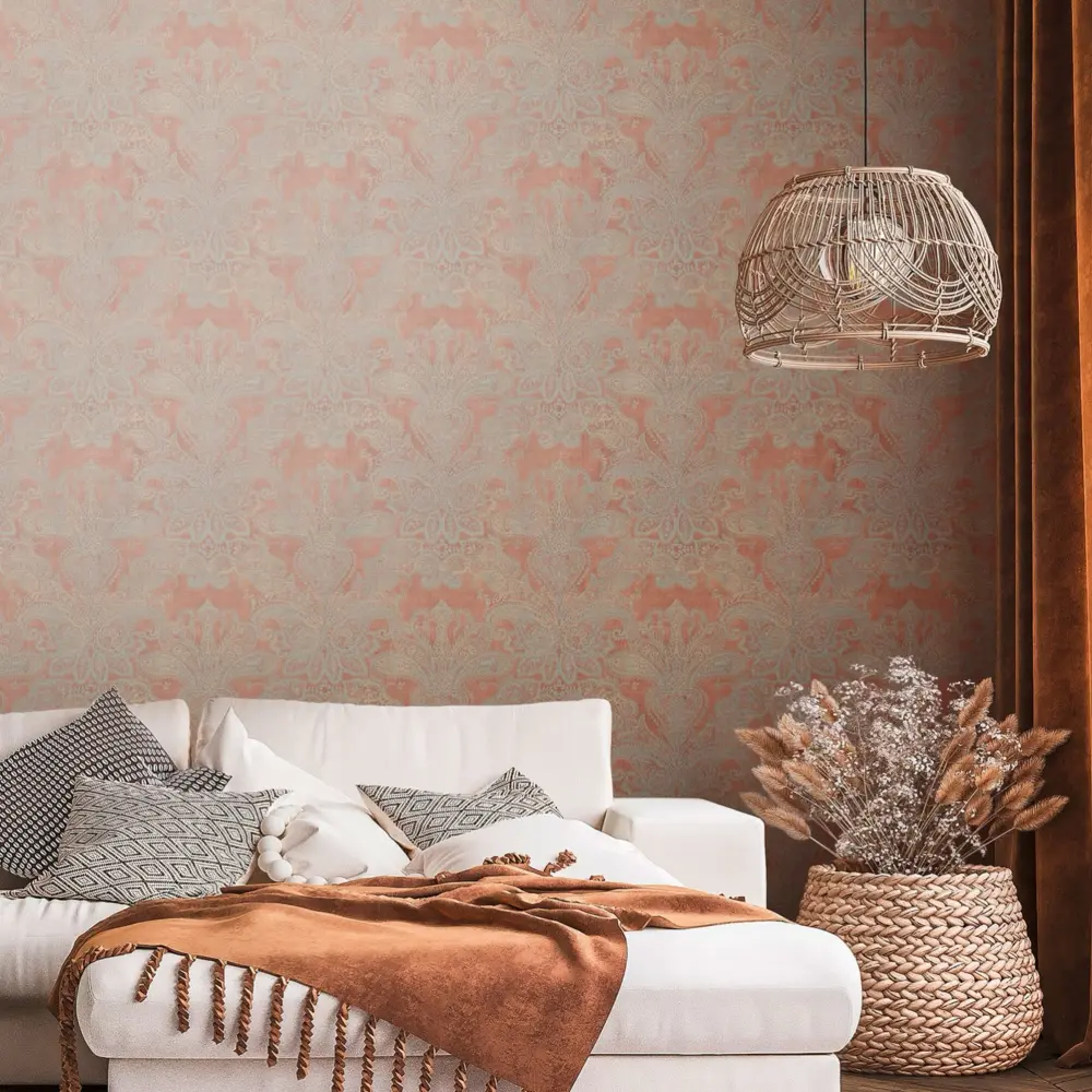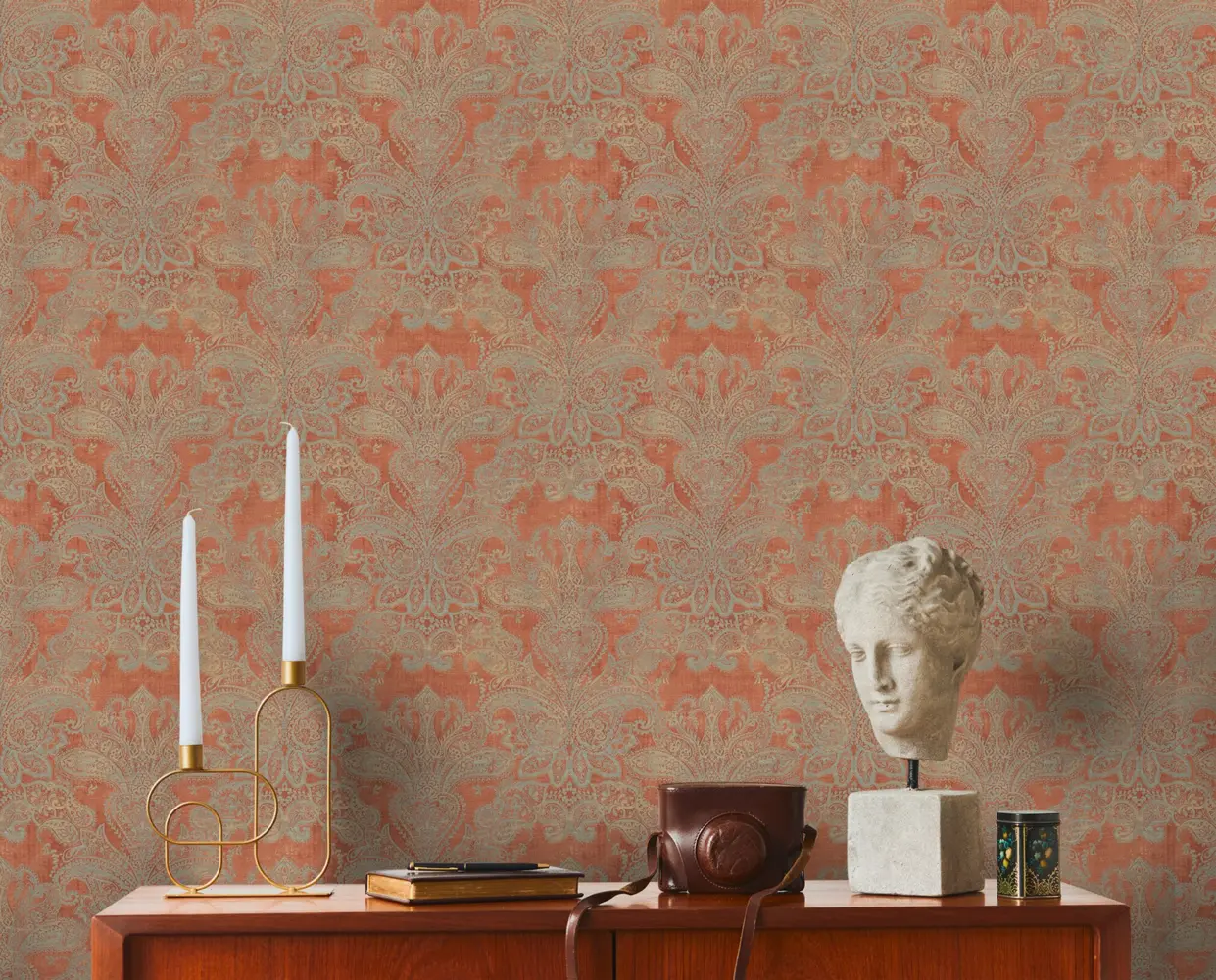 Livingwalls Vinyltapete 391192 – Stilvolles Ornamentdesign in Orange und Türkis