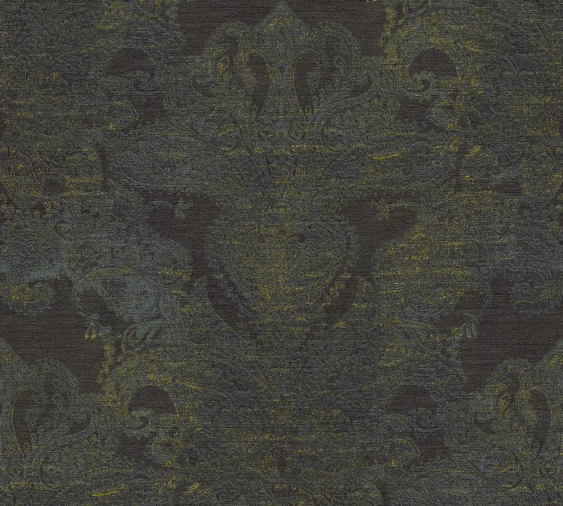 Die Vinyltapete 391195 von A.S. Création vereint Eleganz und modernes Design mit einer exklusiven Ornamentoptik in Schwarz, Blau, Gelb und Gold. Das matte, leicht strukturierte Oberflächenbild verleiht Ihren Räumen einen edlen Look und sorgt für ein ausdrucksstarkes Ambiente, das besonders in Wohnzimmer, Schlafzimmer, Küche, Büro oder Badezimmer beeindruckt.