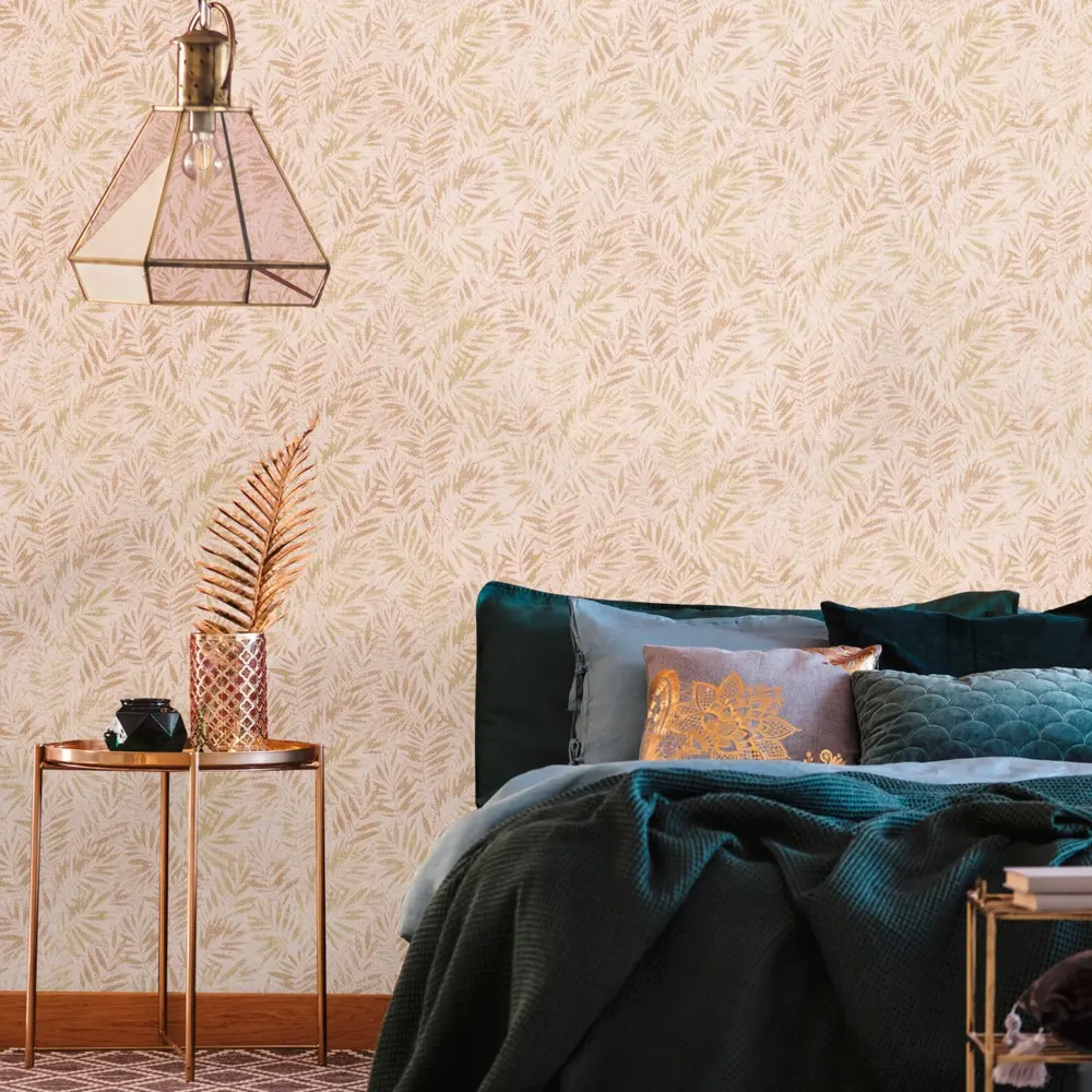 Die Vinyltapete 391203 von A.S. Création aus der Kollektion Livingwalls verbindet modernes florales Design mit funktionaler Qualität. Das zarte Blattmotiv in Rosa und Gold sorgt für ein elegantes Ambiente und setzt an jeder Wand eindrucksvolle Akzente.