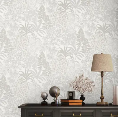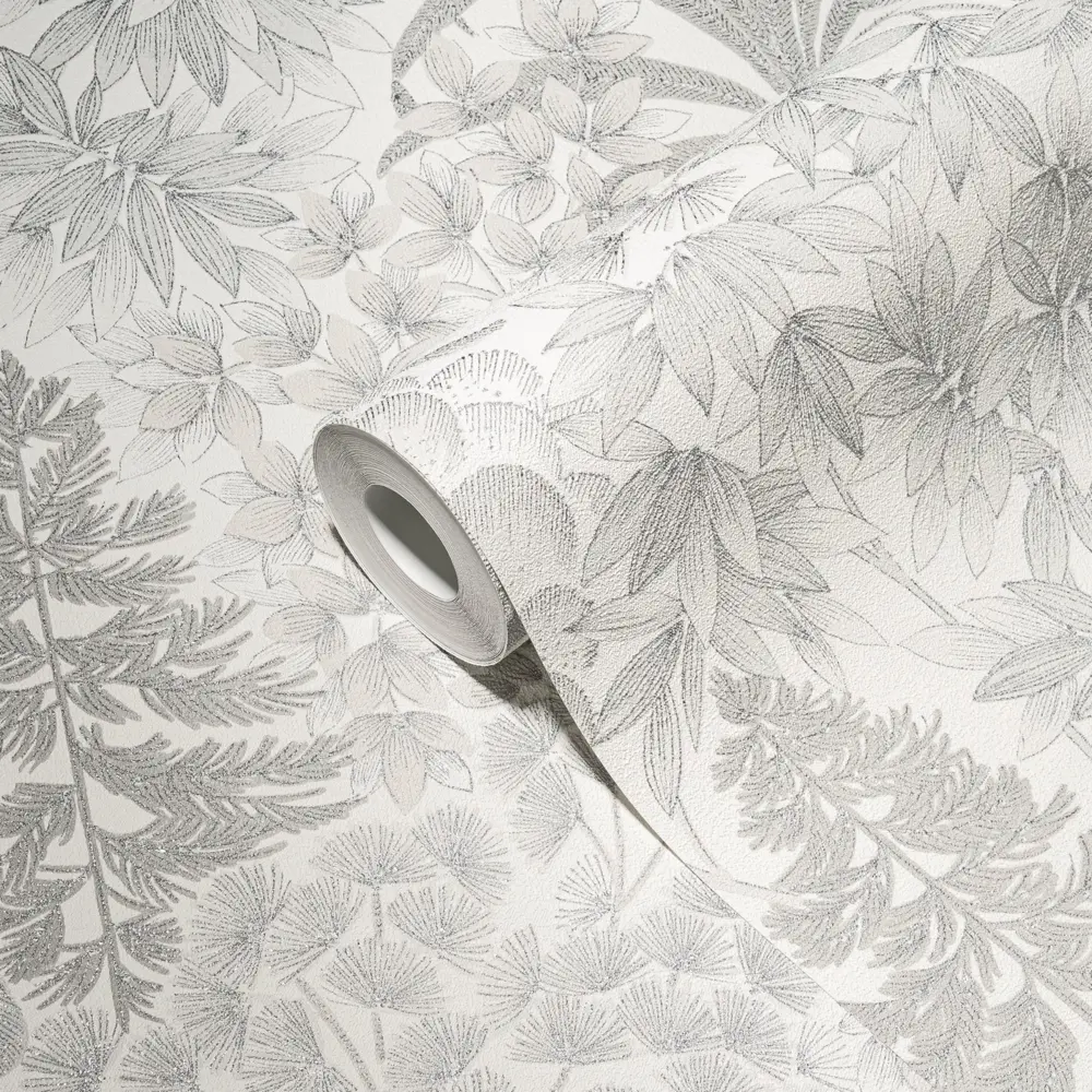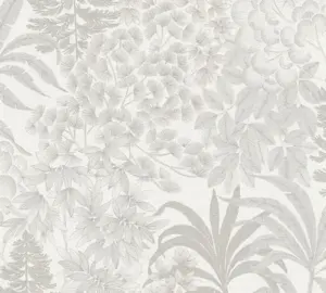 Verleihen Sie Ihren Räumen mit der Livingwalls Vinyltapete 391282 von A.S. Création ein stilvolles und modernes Ambiente. Das florale Design in Weiß, Grau und Silber bringt eine zeitlose Eleganz an Ihre Wände und schafft ein harmonisches Wohngefühl, das in verschiedenste Einrichtungsstile passt.