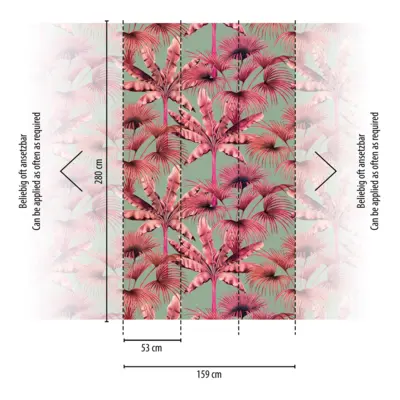 Die A.S. Création Livingwalls Vinyltapete 391833 verbindet ein ausdrucksstarkes Dschungel-Motiv in Blau, Pink und Rosa mit modernen Materialeigenschaften. Das großzügige Format von 2,80 x 1,59 Metern erlaubt eine eindrucksvolle Gestaltung von Wänden und Decken in Wohn- oder Arbeitsbereichen.