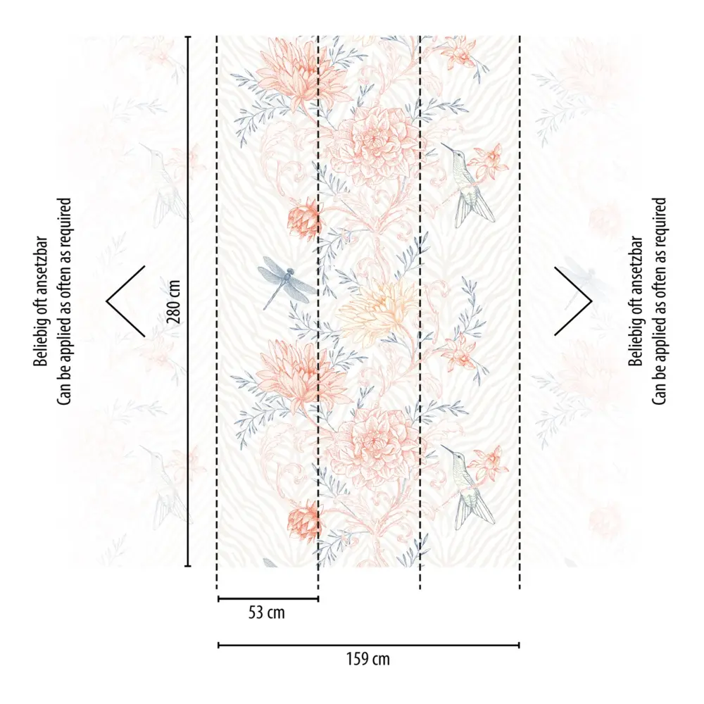 Mit ihrem Vlies-Trägermaterial und einer Größe von 2,80 m x 1,59 m lässt sich die Tapete ansatzfrei und einfach anbringen. Nach Wunsch kann sie rückstandslos trocken entfernt werden.