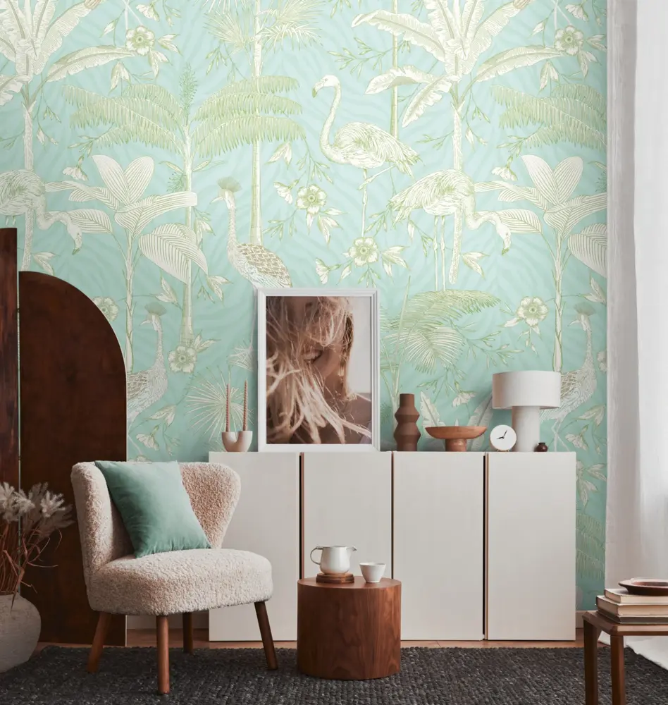 Die Livingwalls Vinyltapete 392061 von A.S. Création verbindet modernes Design mit faszinierenden Tiermotiven in Türkis, Weiß und Grün. Die matte Oberfläche sorgt für eine angenehme Optik, während das glatte Strukturfinish für ein elegantes Erscheinungsbild steht. Dank des Vliesträgers lässt sich die Tapete besonders leicht und restlos trocken von der Wand abziehen.