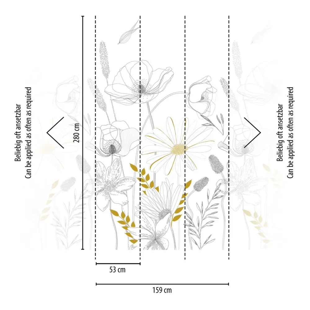 Mit einer Größe von 2,80 m x 1,59 m eignet sich die Tapete ideal zur Gestaltung verschiedener Wohnbereiche wie Wohnzimmer, Schlafzimmer, Küche, Büro und Badezimmer. Die hohe Lichtbeständigkeit sorgt für langanhaltende Farbbrillanz, während die ausgeprägte Waschbeständigkeit eine unkomplizierte Reinigung ermöglicht. Die Verarbeitung ist dank ansatzfreiem Rapport besonders einfach; zudem kann die Tapete restlos trocken abgezogen werden.