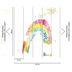 Mit einer Gesamtgröße von 2,80 m x 2,65 m bietet diese Vinyltapete großzügige Gestaltungsfreiheit. Sie ist aus robustem Vlies gefertigt und überzeugt durch ihre hohe Waschbeständigkeit sowie gute Lichtbeständigkeit – ideal für lebendige Kinderwelten. Die Tapete ist ansatzfrei, was das Anbringen besonders einfach macht, und lässt sich später restlos trocken abziehen.