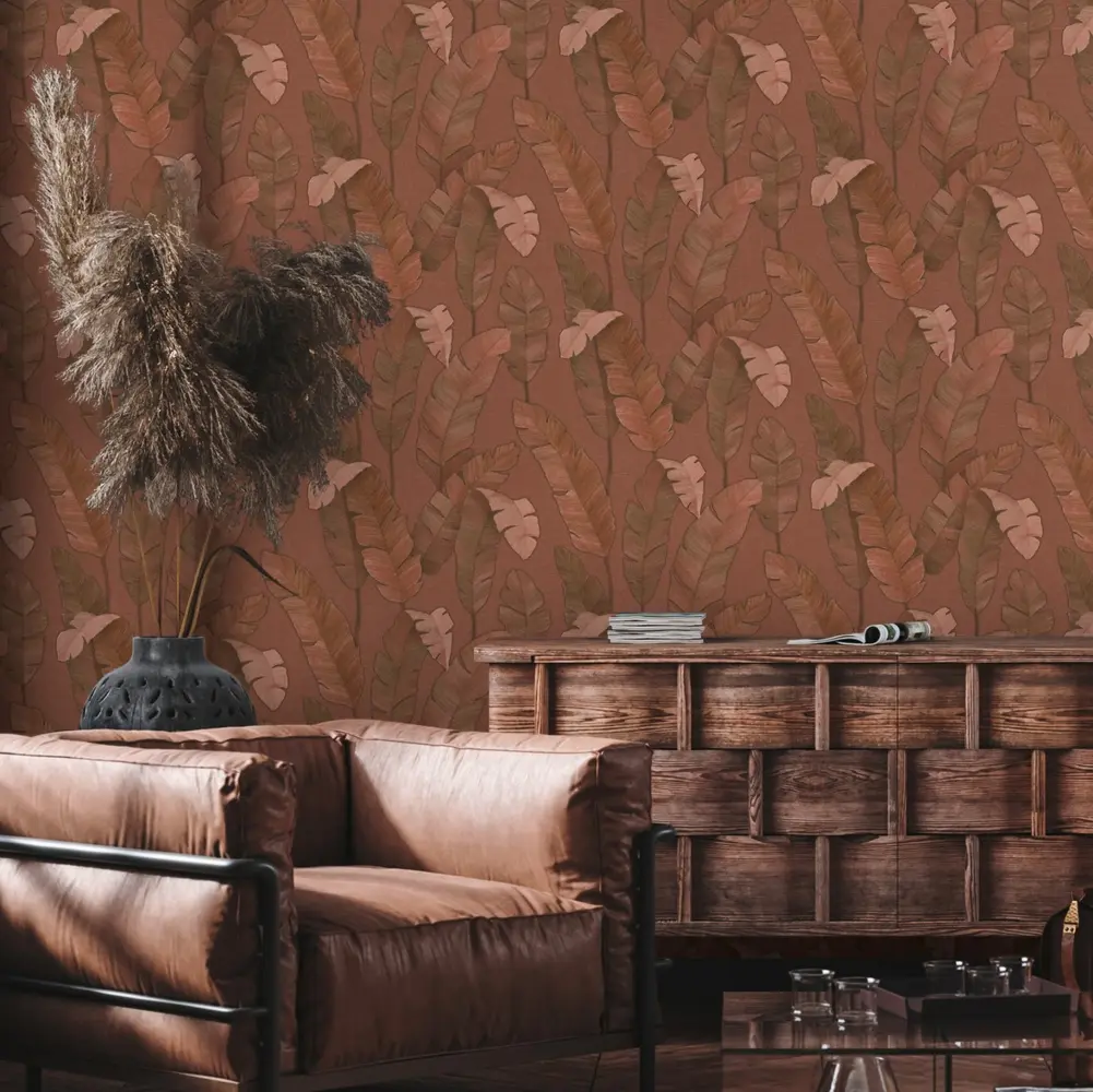Die Vinyltapete von A.S. Création beeindruckt durch ihr stilvolles Blattmuster in edlem Rotbraun und bronzefarbener Optik. Das florale Design verleiht jedem Raum eine besondere Atmosphäre und wirkt sowohl modern als auch einladend. Dank der leicht glänzenden, strukturierten Oberfläche wird das Licht angenehm reflektiert, wodurch die Tapete ausdrucksstark zur Geltung kommt.