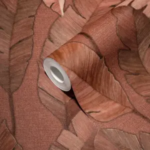Livingwalls Vinyltapete 392181 – Rotbraun Bronze mit floralem Blätterdesign
