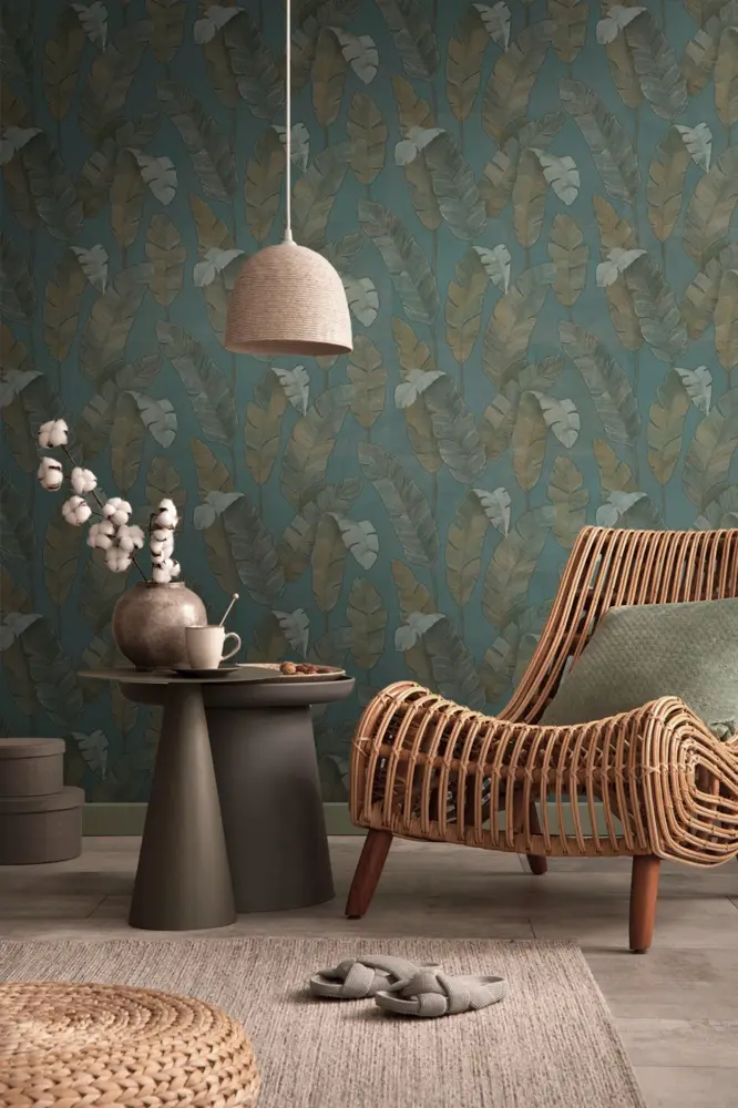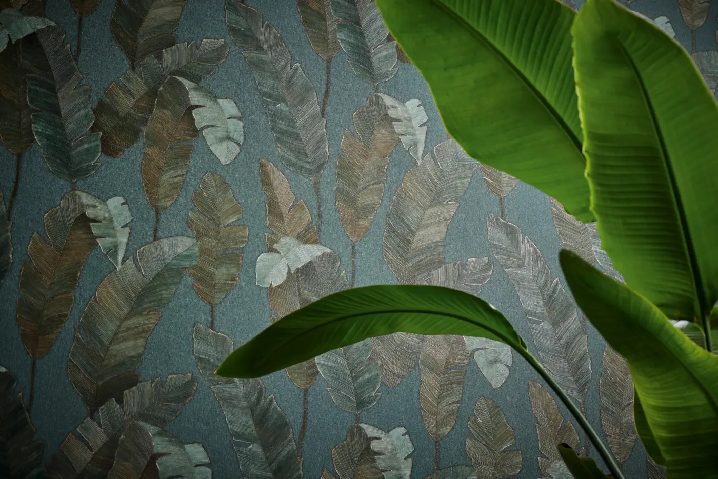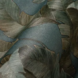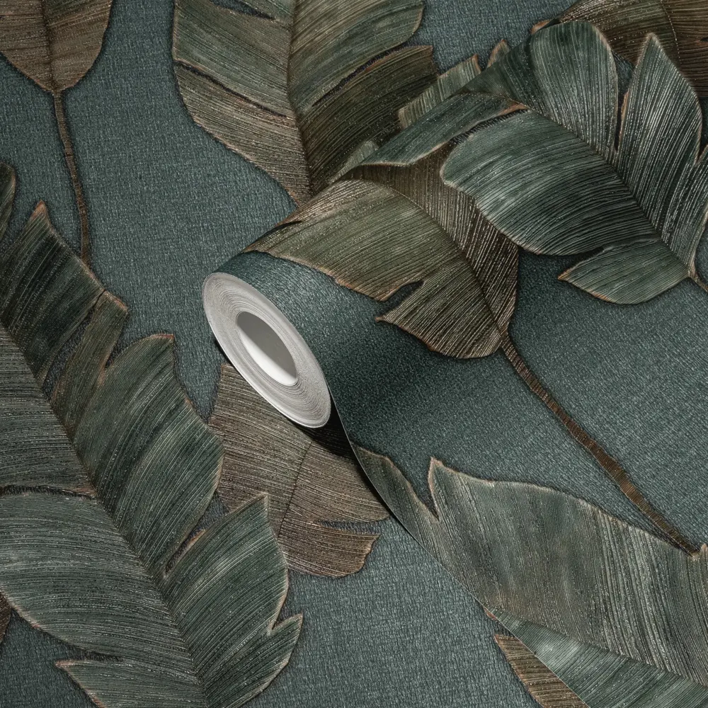 Livingwalls Vinyltapete 392183 – Petrol Grün mit Blattmotiv