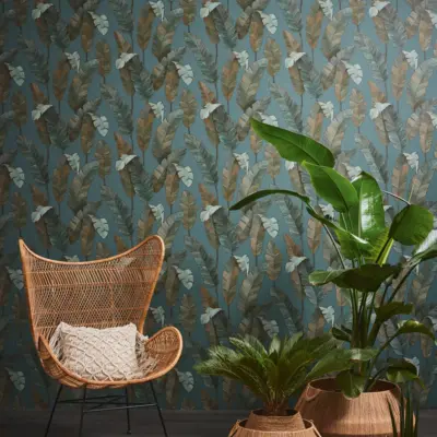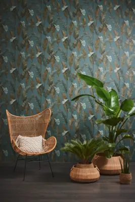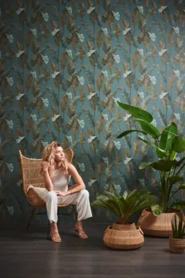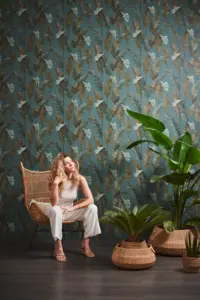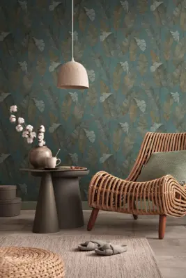 Die A.S. Création Livingwalls Vinyltapete 392183 beeindruckt mit einem stilvollen, floralen Blattdesign in den Farben Petrol, Grün und Braun. Die Tapete besitzt eine sanft glänzende, strukturierte Oberfläche auf strapazierfähigem Vinyl, das auf einem hochwertigen Vliesträger aufgebracht ist. Mit einer Bahn von 53 cm Breite und 10,05 m Länge eignet sich diese Tapete ideal für individuelle Wandgestaltungen in Wohnzimmer, Schlafzimmer, Küche, Büro oder Badezimmer.