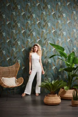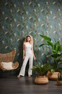 Die Tapete ist scheuerbeständig, lässt sich restlos trocken abziehen und überzeugt durch ihre gute Lichtbeständigkeit. Dank des versetzten Rapports von 64/32 cm wird das lebendige Blattmuster harmonisch an der Wand in Szene gesetzt. Die Kombination aus Blumen- und Blättermotiven sowie der florale Stil verleihen jedem Raum eine erfrischende und moderne Atmosphäre.