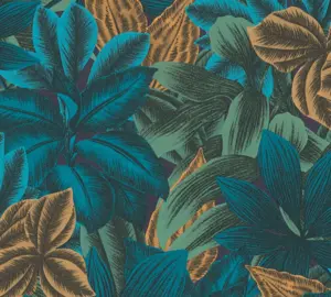 Livingwalls Vinyltapete 392221 – Stilvolles Dschungel-Design in Blau und Orange