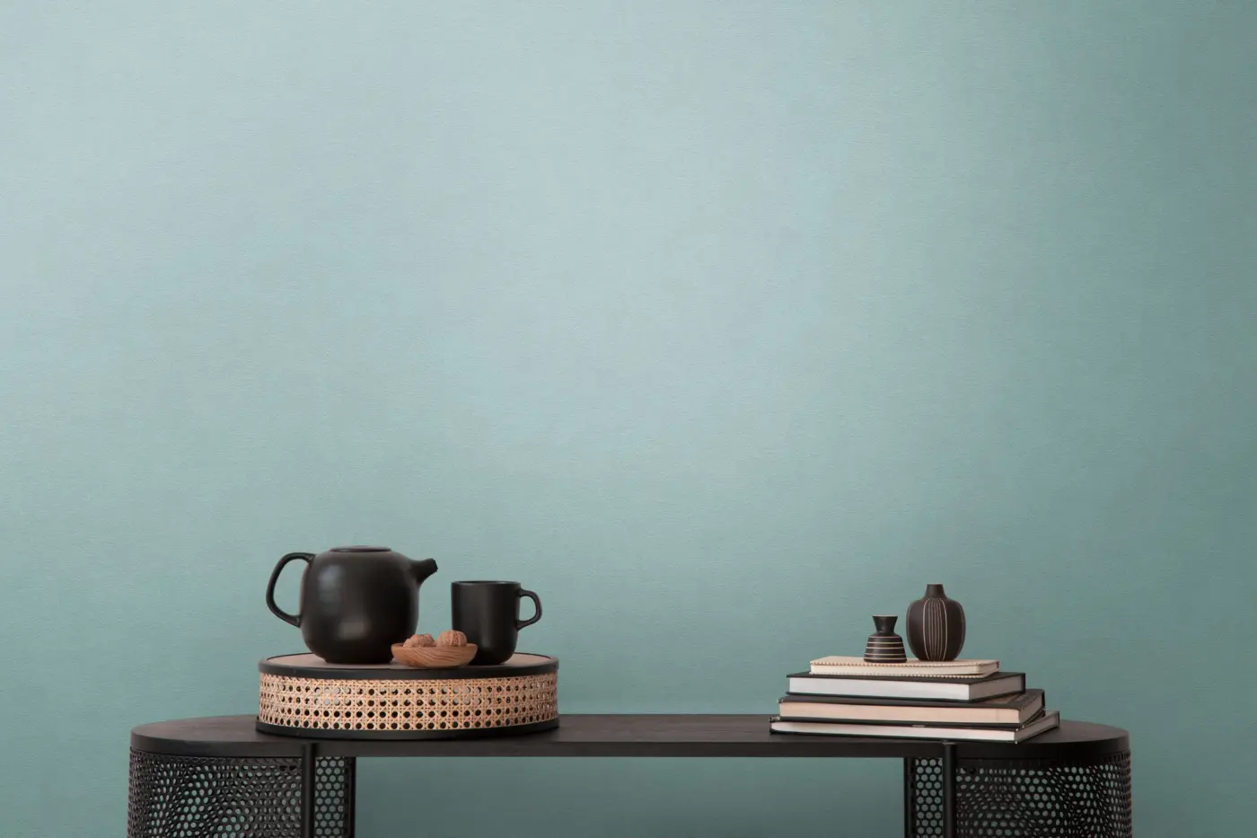 Die hochwertige Vliestapete von A.S. Création in der Farbgebung Blau-Grün setzt moderne Akzente in jedem Wohnraum. Mit ihrem unifarbenen Design und der matten, glatten Oberfläche eignet sie sich ideal für die stilvolle Gestaltung von Wohnzimmer, Schlafzimmer, Büro, Küche oder Bad.