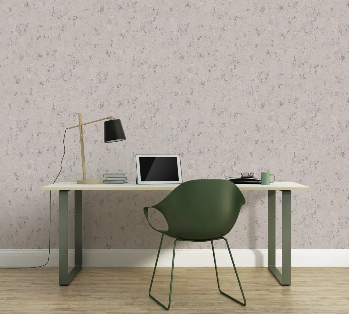 Die Vliestapete 393873 von A.S. Création vereint moderne Putzoptik mit einer eleganten Farbkombination aus Greige, Beige, Grau und Silber. Das strukturierte Material mit leicht glänzender Oberfläche verleiht jedem Raum eine zeitlose, edle Atmosphäre. Die Tapete eignet sich ideal für verschiedene Wohnbereiche wie Schlafzimmer, Wohnzimmer, Küche, Bad oder Büro und setzt stilvolle Akzente an Wand und Decke.