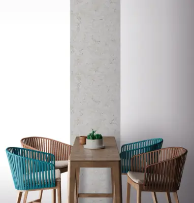 Die Bordüre besteht aus Vinyl auf SK-Folie und überzeugt durch eine pflegeleichte, langlebige Oberfläche. Sie ist gut lichtbeständig und hoch waschbeständig – ideal für Räume, in denen Wände häufiger gereinigt werden. Die leicht strukturierte Oberfläche sorgt für eine dezente Tiefenwirkung, ohne das Gesamtbild zu dominieren.