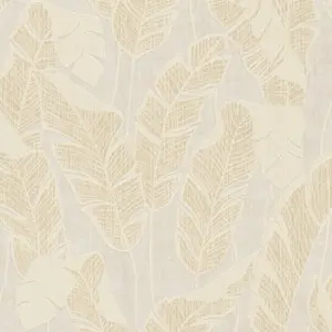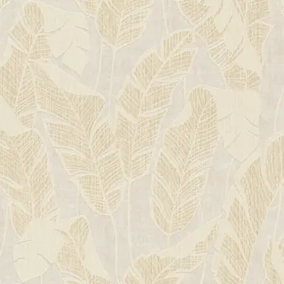 Erleben Sie mit der A.S. Création Vliestapete 395025 ein stilvolles Wanddesign, das moderne Eleganz mit natürlichem Flair vereint. Das ansprechende Blattmotiv in den Farben Weiß, Beige und Gold verleiht jedem Raum eine harmonische, florale Atmosphäre.