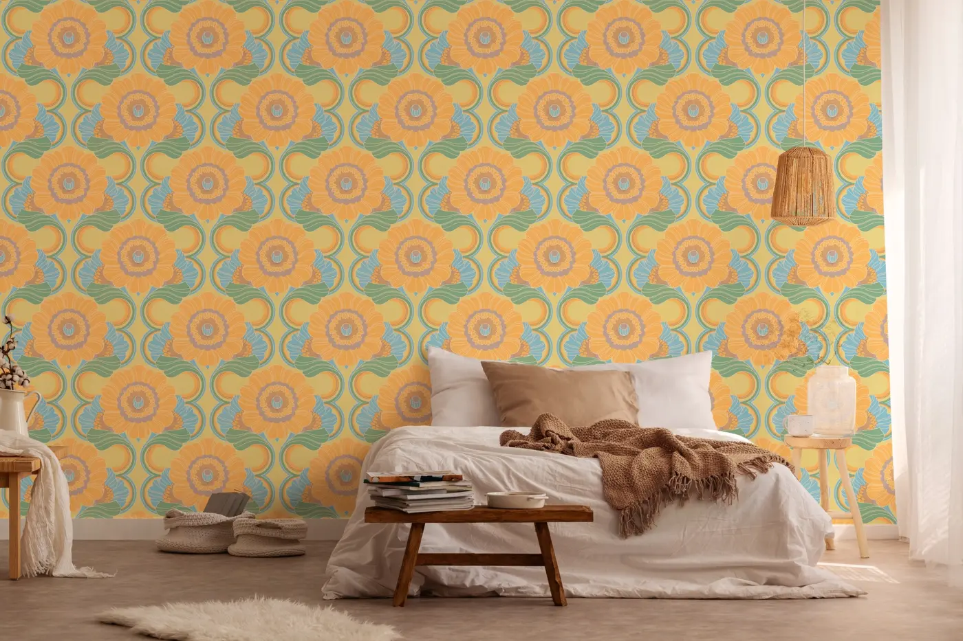 Mit ihrer Kombination aus moderner Optik und funktionalen Eigenschaften eignet sich diese Vinyltapete ideal zur stilvollen Wandgestaltung im floralen Stil.